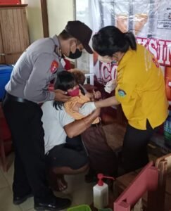 Polres Landak – Mempawah Hulu, Bertempat di Desa salaas SDN 01 Kecmatan Mempawah Hulu, PKM karangan gelar Vaksinasi Covid-19 untuk anak usia 6-11 tahun. Sabtu (5/2/2022).