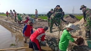 Tampak dalam pekerjaan diantaranya adalah Sertu Juliyanto (Babinsa), Kaur Perencanaan Desa, Pak RW, Psk RT dan beberapa tukang dari dukuh Sigobang, desa Majasto bersama warga masyarakat rami-ramai mendukung pekrjaan pembuatan talud ini.