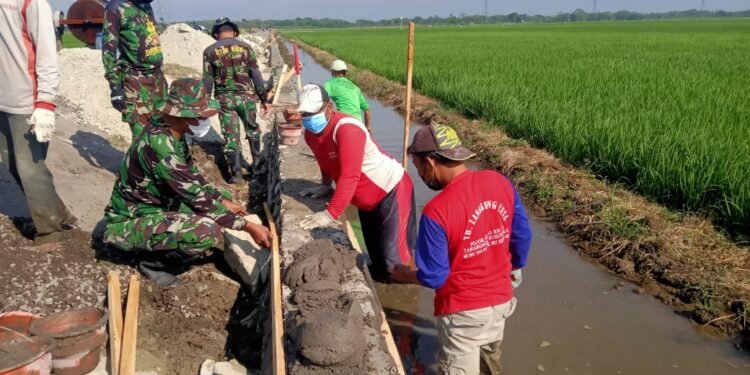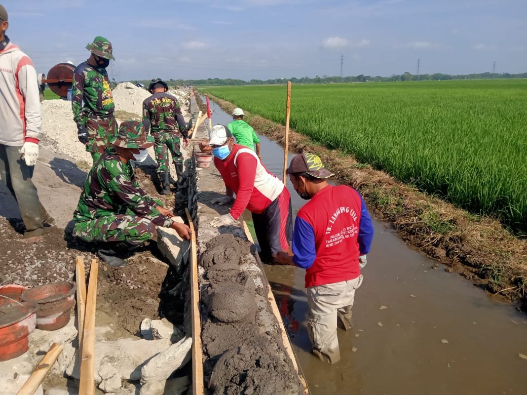 Sementara ini dibeberap titik konstruksi talud yang sudah mengering tampak Warga dan TNI mulai melaksanakan pengisian lepan dan beberap tempat pada lepan yang sudah mengering segera dilaksanakan pengacian. Sasaran talud masih panjang, warga masyarakat dan TNI tetap semangat, semetra pada Pra TMMD ini ploting pekerjaan fisik tetap fokus pada pembuatan talud jalan.