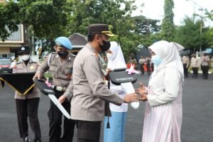 Dalam apel pagi tersebut AKBP Arman S.IK, M.Si juga menyerahkan 3 sepeda motor kepada pemenang undian Doorprize Vaksinasi Serentak di Polres Sampang yang diikuti 181369 warga masyarakat Kabupaten Sampang yang telah melakukan vaksinasi Covid-19 dosis 1 dan dosis 2 mulai tanggal 31 Desember 2021 sampai tanggal 03 Pebruari 2022.