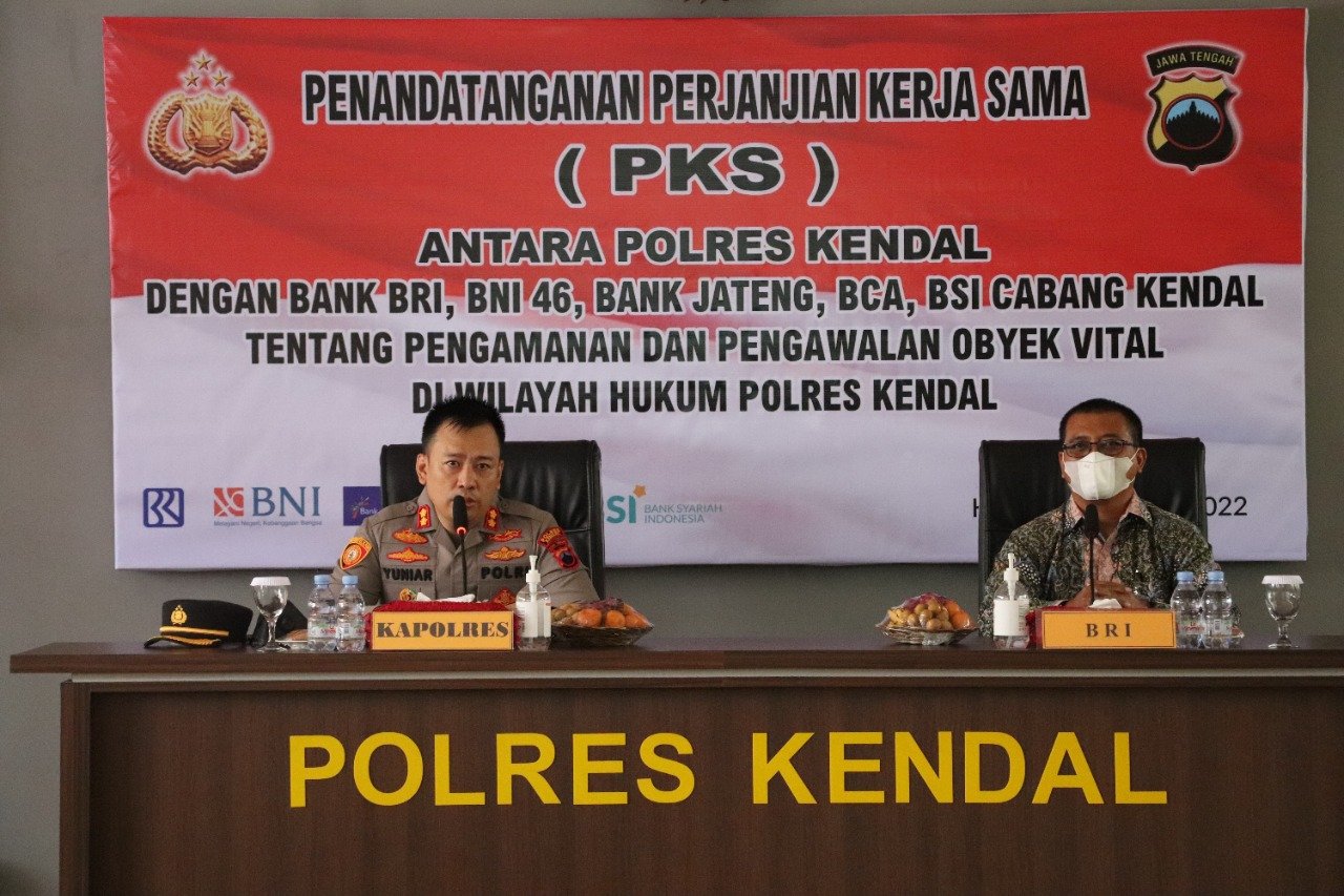 Amankan Obyek Vital, Polres Kendal Menandatangani Kerjasama Penjagaan Dan Pengawalan Dengan Sektor Perbankan.