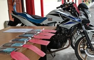 Adapun barang bukti yang diamankan berupa dua unit kendaraan sepeda motor milik pelaku yang digunakan saat melakukan aksi pencurian yakni, satu unit sepeda motor jenis Vega R New bernomor polisi BP : 3743 DC warna hitam dan satu unit sepeda motor jenis CBR warna putih bernomor polisi BP : 2932 LD. Dan barang bukti hasil curian berupa satu unit handphone merk Oppo A57, satu unit handphone merk Samsung Note 3, satu unit handphone merk Samsung M31, satu unit handphone merk Oppo A37, satu unit handphone Vivo Y12S, satu unit handphone Oppo A5 2020, dan satu unit handphone Vivo Y17.