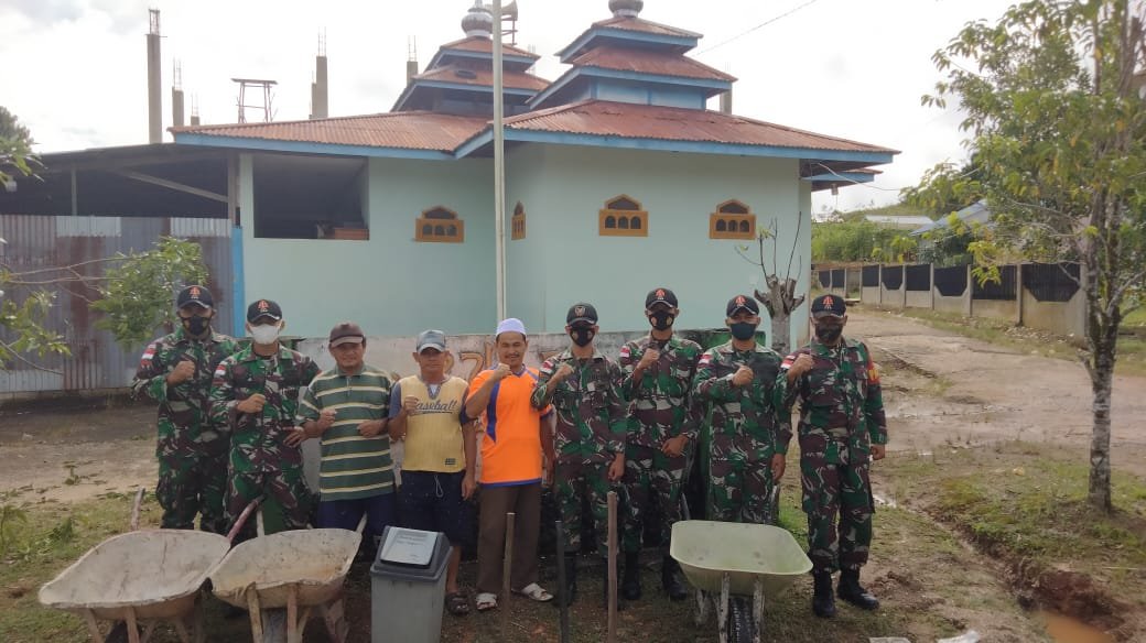 Letda Inf Hendri Calaus beserta 20 orang anggotanya “Kami membantu bersihkan lingkungan Masjid mulai dari pengangkatan kayu bekas bangunan, pengurukan tanah, jika bersih dan rapi warga pun lebih nyaman untuk beribadah”, tegasnya.
