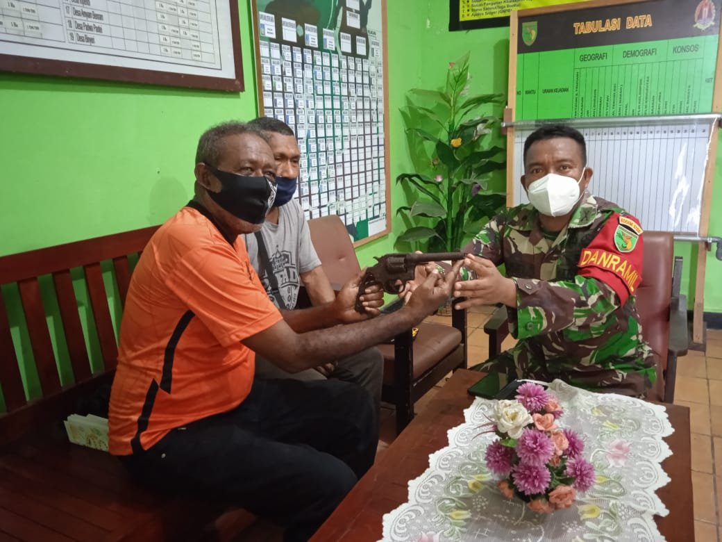 “Usai mendengar hal tersebut, Babinsa mendampingi warga untuk menyerahkan senjata api tersebut ke Koramil 1708-01/Biak Kota,” tambah Danramil.