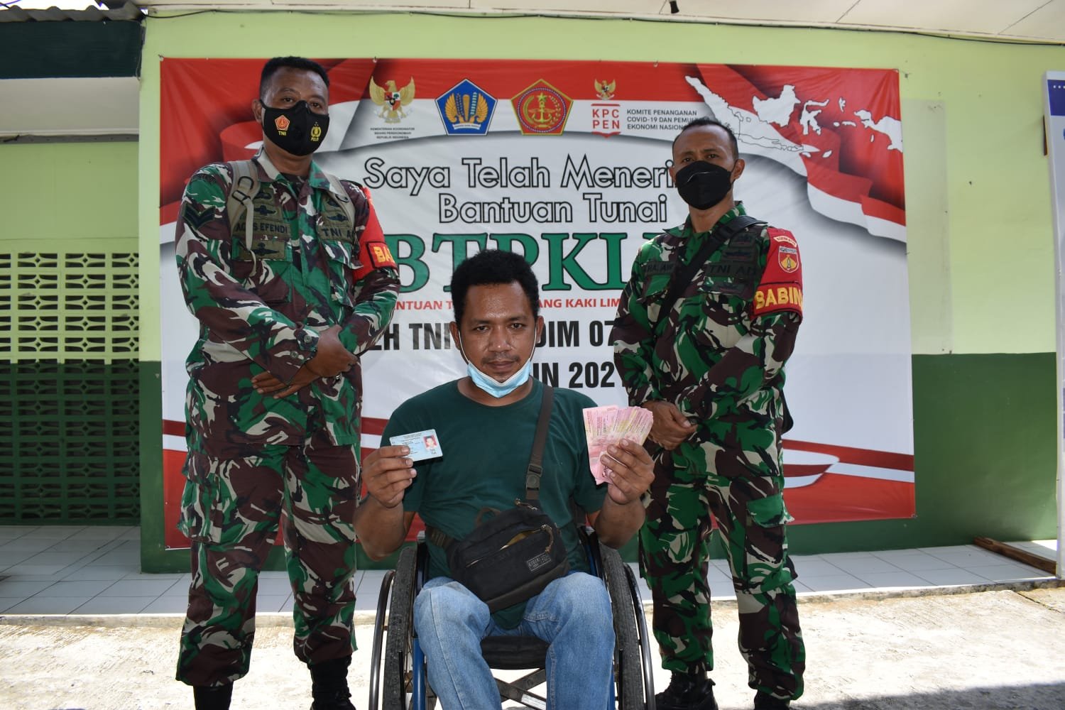Sragen, Jateng – Pembagian BTPKLW (Bantuan Tunai Pedagang Kaki Lima Dan Warung) di Kodim 0725/Sragen saat ini sudah berjalan memasuki hari ke empat. Ada pemandangan yang tak biasa pada saat pembagian di hari keempat, yakni Sertu Agus Efendi dan Sertu Mikha yang keduanya merupakan Babinsa anggota Koramil 01/Sragen dengan cekatan membantu penyandang disabilitas yang datang ke Kodim Sragen untuk mengambil bantuan tunai tersebut.