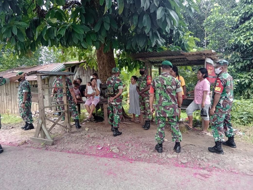 Sorong, Papua Barat – Babinsa Koramil 1802-02/Sorong Barat Sertu B.Andatu beserta 9 orang anggota melaksanakan komunikasi sosial menghimbau kepada warga Kelurahan Tampagaram, Distrik Maladumes, Kota Sorong untuk melaksanakan Vaksinasi Covid-19. Selasa (04/01/2022).