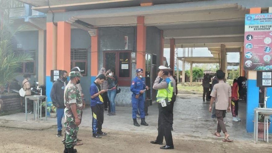 CAHAYANEWSKEPRI.COM – Bertempat di halaman sekolah SMK MODELINK tersebut Babinsa bersama petugas gabungan kabupaten, melakukan pemeriksaan kartu vaksin Covid-19 kepada siswa siswi. Ini dilakukan untuk mendorong percepatan vaksinasi di daerah.