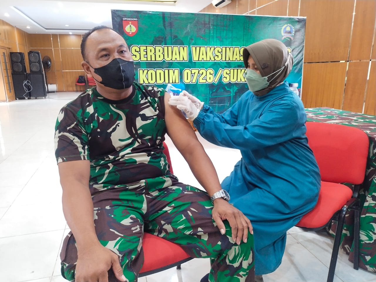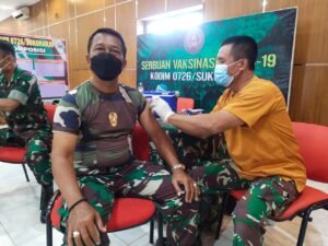 Sukoharjo – Anggota Kodim 0726/Sukoharjo menerima vaksinasi Booster sebagai upaya memaksimalkan peran anggota dalam melawan Covid-19 di wilayah, untuk membentengi diri dari risiko paparan virus covid-19.