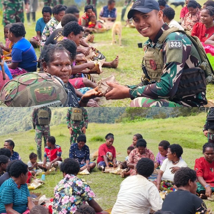 CAHAYANEWSKEPRI.COM – Seperti yang dilakukan hari ini, Satgas Mobile Yonif 323 TK Dangbet Pimpinan Lettu Inf Tria Ristidiyanto mengggelar acara makan bersama di halaman TK Dangbet dengan masyarakat untuk menjalin keakraban dan mempererat hubungan silaturahmi dengan masyarakat.
