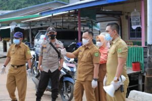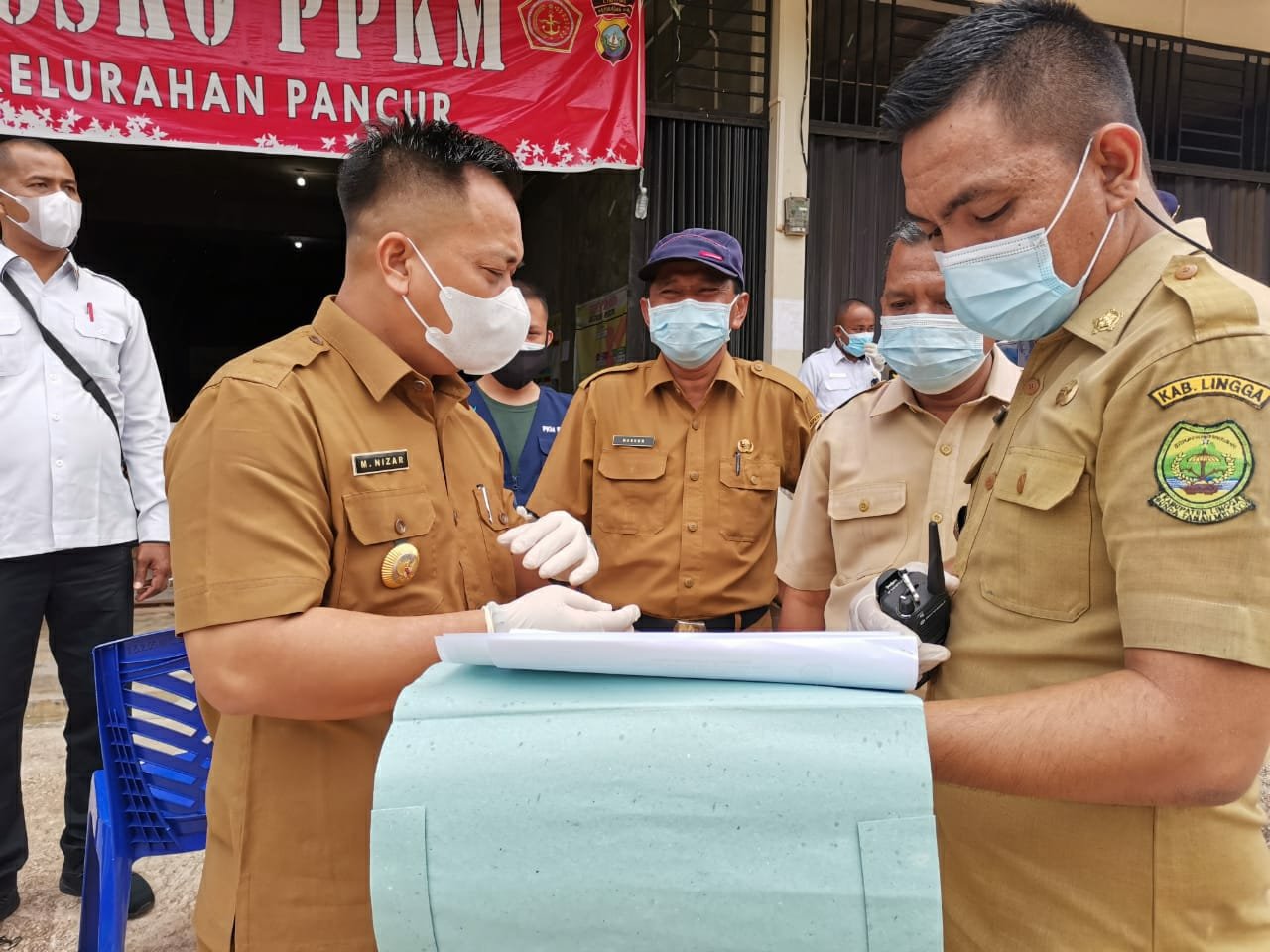 Lingga, Kepri – Bupati Lingga, Muhammad Nizar berserta istri, Maratusholiha Nizar memberikan himbauan terkait penerapan Protokol Kesehatan (Prokes) secara ketat kepada masyarakat Kelurahan Pancur, saat melakukan peninjauan pelaksanaan giat penanggulangan covid-19 di Posko PPKM setempat, Senin (12/07/2021).