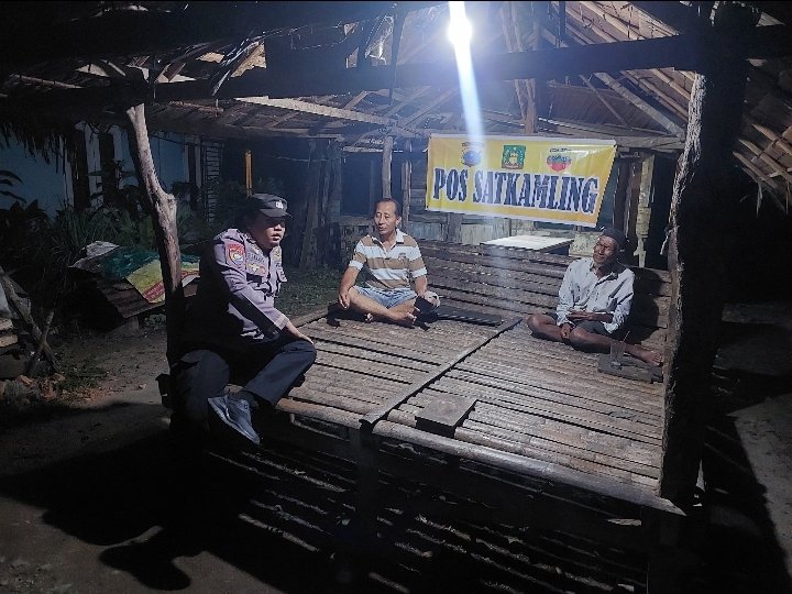 Dalam kesempatan tersebut, Bhabinkamtibmas juga menyampaikan pesan-pesan kamtibmas kepada warga yang sedang melaksanakan ronda malam.