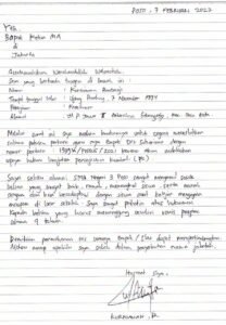 Melalui surat ini saya mohon bantuannya untuk segera menerbitkan salinan putusan perkara guru saya Bapak Drs. Suhariono, dengan nomor perkara: 1999 K.PID.SUS/2021, karena akan melakukan upaya hukum lanjutan Peninjauan Kembali (PK).