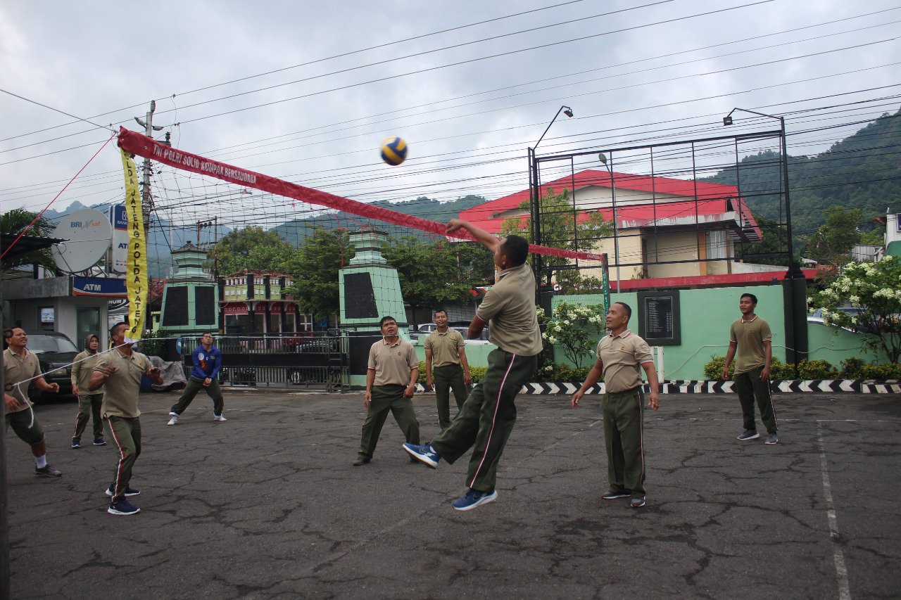 CAHAYNEWKEPRI.COM – Seperti yang dilakukan oleh Prajurit dan PNS Kodim 0728/Wonogiri, setelah selesai melaksanakan apel pagi mereka melaksanakan senam pemanasan yang dilanjutkan dengan olahraga bola Volly di halaman Makodim setempat, Jum’at (28/1).