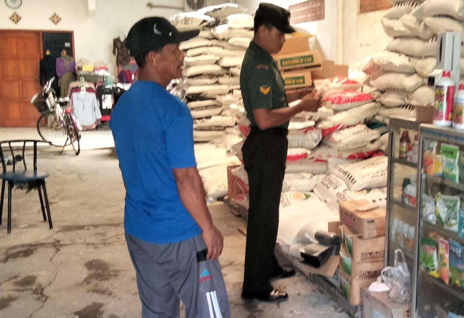 Sragen – memastikan ketersediaan pupuk bersubsidi aman, Babinsa Desa Girimargo Koramil 16/Miri Kodim 0725/Sragen Sertu Adi melaksanakan pengecekan pupuk bersubsidi di kios milik Bp Kusno. Jum’at (24/03/2023).