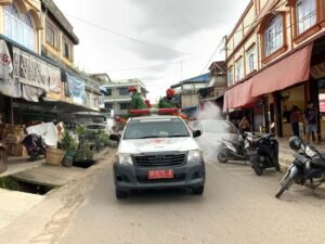 Penyemprotan Disinfectan untuk memutus mata rantai penyebaran Covid-19 di wilayah Kecamatan Bintan Timur.