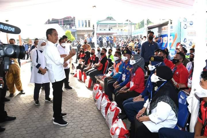 Baubau – Ketika berkesempatan bertemu Presiden, tidak jarang momen langka ini dimanfaatkan warga untuk berbincang-bincang dengan Presiden Joko Widodo. Hal ini terjadi saat Presiden memberikan bantuan subsidi upah (BSU) di Kantor Pos Baubau, Kota Baubau, Provinsi Sulawesi Tenggara, Selasa, 27 September 2022.