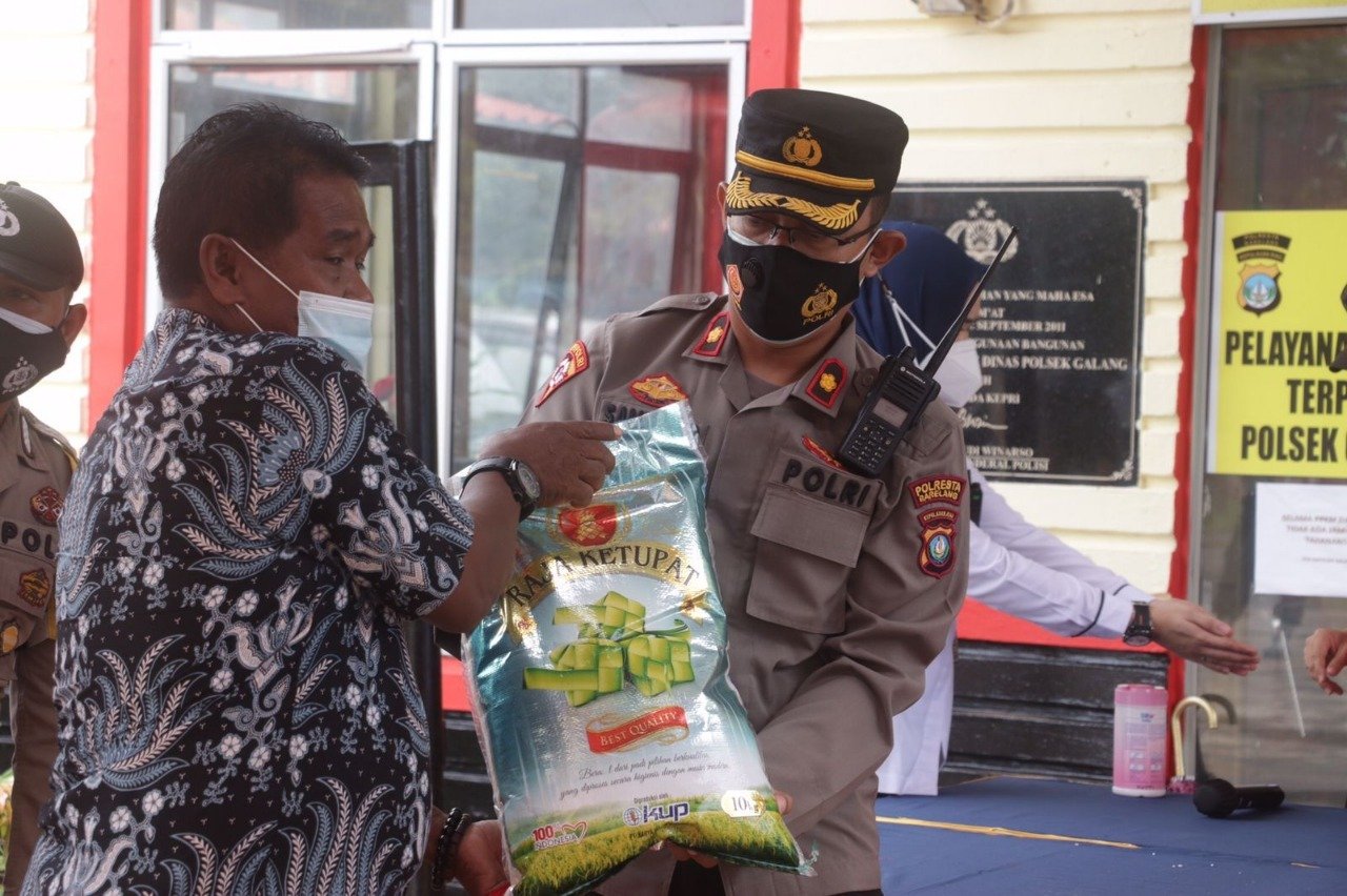 Batam – Polda Kepri kembali melaksanakan Bakti Sosial dalam rangka rangka PPKM Level-3, sebanyak 500 Paket sembako yang diberikan kepada Masyarakat yg ada di Kecamatan Galang. Kegiatan dihadiri oleh Kapolda Kepri Irjen Pol Dr. Aris Budiman, M.Si., PJU Polda Kepri, Wakapolresta Barelang, Kapolsek pulau Galang, Camat pulau Galang dan masyarakat pulau Galang. Jumat (20/8/2021).