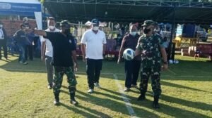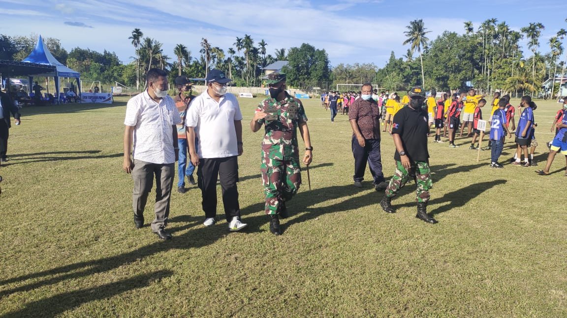 Jayapura – Dandim 1701/Jayapura Letkol Inf Richard Arnold Sanggari, S.E., MM., Resmi membuka Turnamen Liga Top Skor Papua U-14 Tahun 2022, Jum’at (4/2) yang berlangsung di Lapangan Sepakbola Kampung Nafri, Distrik Abepura, Kota Jayapura, Papua.