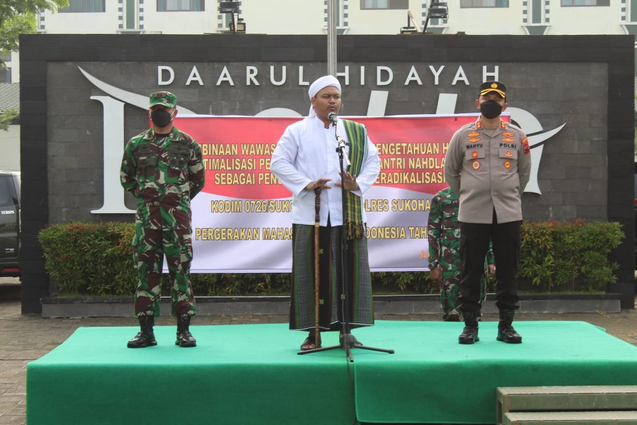 Dalam kesempatan tersebut Letkol Inf Agus Adhy Darmawan, S.IP., M.I.Pol (Dandim 0726/Sukoharjo) menyampaikan bahwasannya pada masa sekarang ini, dimana perkembangan situasi nasional, global dan internasional telah membawa dampak meningkatnya paham radikal di wilayah indonesia.