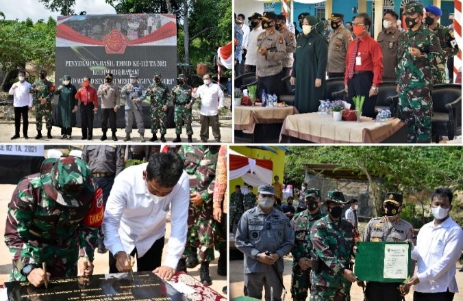 Lantamal IV (Batam) – Komandan Pangkalan Utama TNI Angkatan Laut IV Tanjung pinang (Danlantamal IV Tanjung pinang) Laksamana Pertama TNI Dwika Tjahja Setiawan, S.H.,M.H., bersama Wakil Gubernur Provinsi Kepri Hj. Marlin Agustina dan Unsur Forkopimda Provinsi Kepri hadiri acara Penutupan Tentara Manunggal Membangun Desa (TMMD) ke-112 tahun 2021 yang berlangsung di Kampung Teluk Air Setokok Batam Kepri, Kamis pagi (14/10/2021).