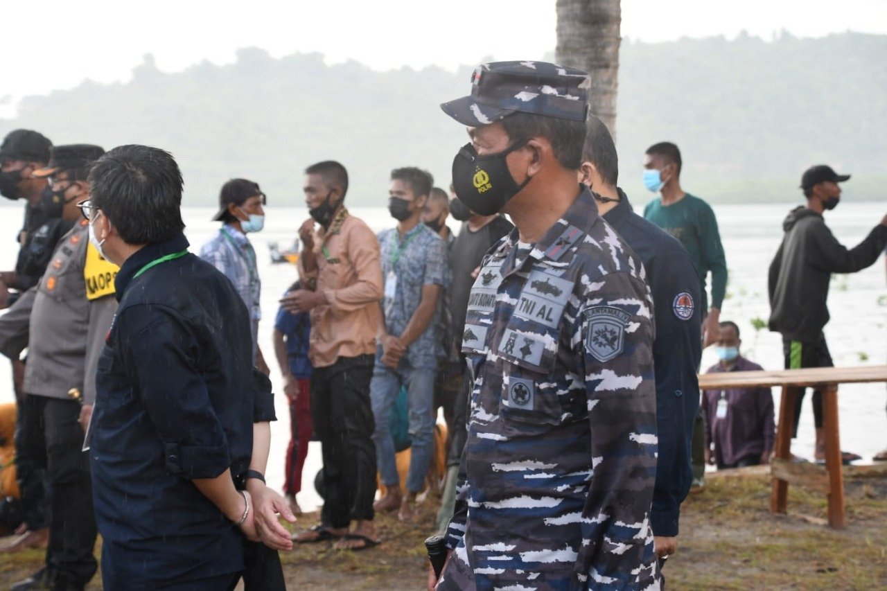 Lantamal IV (Tanjungpinang) – Komandan Pangkalan Utama TNI Angkatan Laut IV Tanjug pinang (Danlantamal IV Tanjung pinang) Laksamana Pertama TNI Indarto Budiarto, S.E., M.Han., bersama Gubernur Provinsi Kepri H.Ansar Ahmad, S.E., M.M., unsur Forkopinda Provinsi Kepri, Walikota Batam H.Muhammad Rudi hadiri acara penanaman pohon mangrove dan pelepasan burung elang laut oleh Presiden RI Ir.H Joko Widodo yang berlangsung di Pulau Setokok Kepulauan Riau, Selasa siang (28/9/2021).