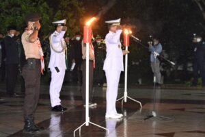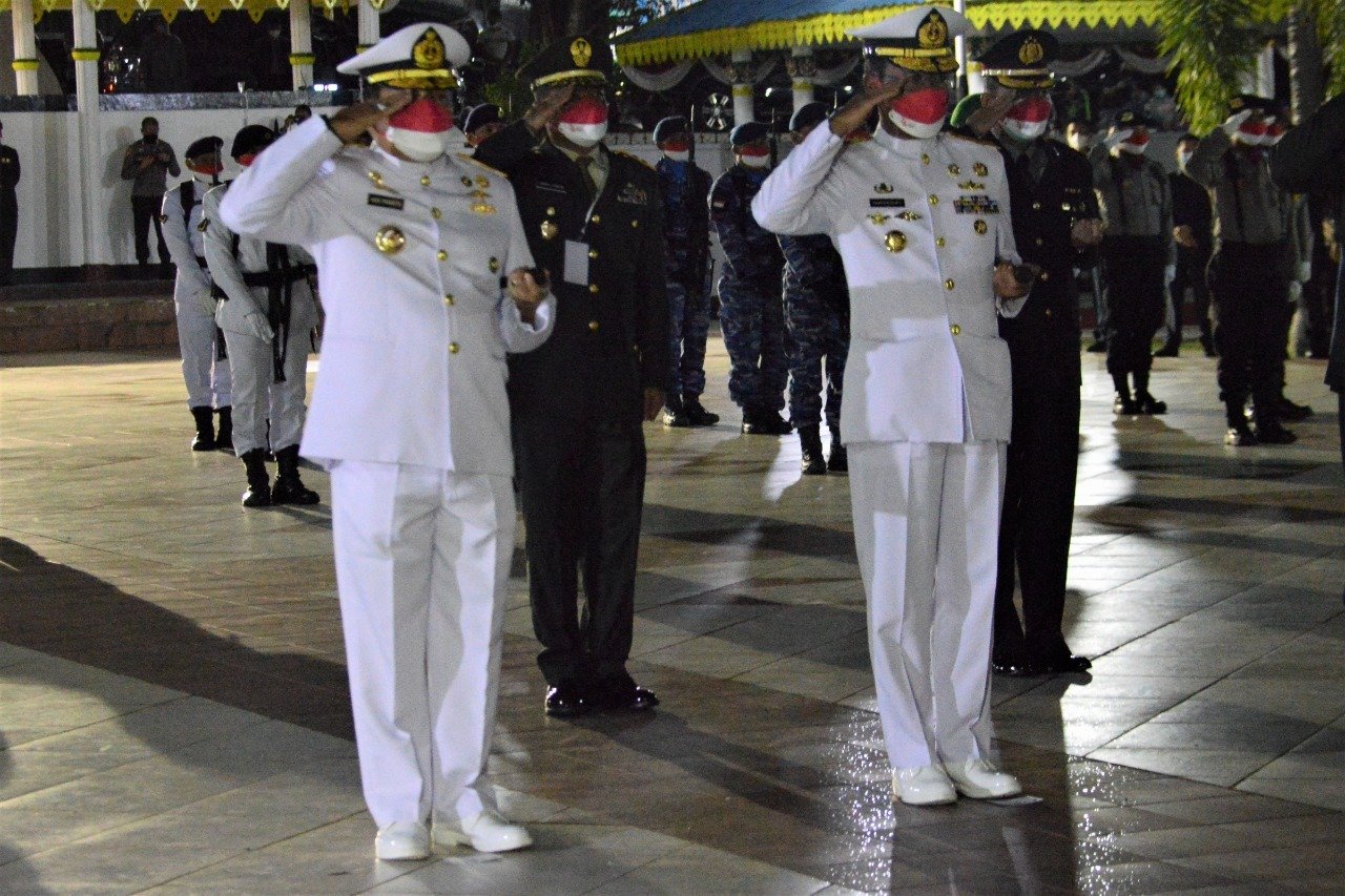 Lantamal IV (Tanjungpinang) – Komandan Pangkalan Utama TNI Angkatan Laut IV Tanjungpinang (Danlantamal IV Tanjunpinang), Laksamana Pertama TNI Indarto Budiarto, S.E., M.han., besama Gubernur Provinsi Kepri H.Ansar Ahmad, S.E., M.M., Pangkogabwilhan I Laksamana Muda TNI Muhammad Ali, S.E., M.M., serta unsur Forkopimda Propinsi Kepri ikuti Upacara Apel Kehormatan dan Renungan Suci (AKRS) yang berlangsung di Taman Makam Pahlawan (TMP) Pusara Bhakti Jl. Gatot Subroto Kampung Bulang Bukit Bestari Tanjungpinang Kepri, Selasa dini hari (17/8/2021).
