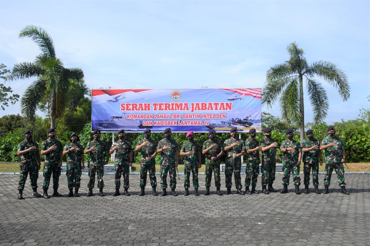 CAHAYANEWSKEPRI.COM – Jabatan Danlanal TBK resmi diserahterimakan dari Letkol Laut (P) Puji Basuki kepada Letkol Laut (P) Joko Santoso kemudian jabatan Dantim Intel Lantamal IV dari Letkol Laut (E) Hari Bagio Wijayanto kepada Letkol Laut (E) Firman Syah selanjutnya jabatan Kadisbek yaitu Mayor Laut (S) Ivan Chi Duwi Kurnia Pasya.