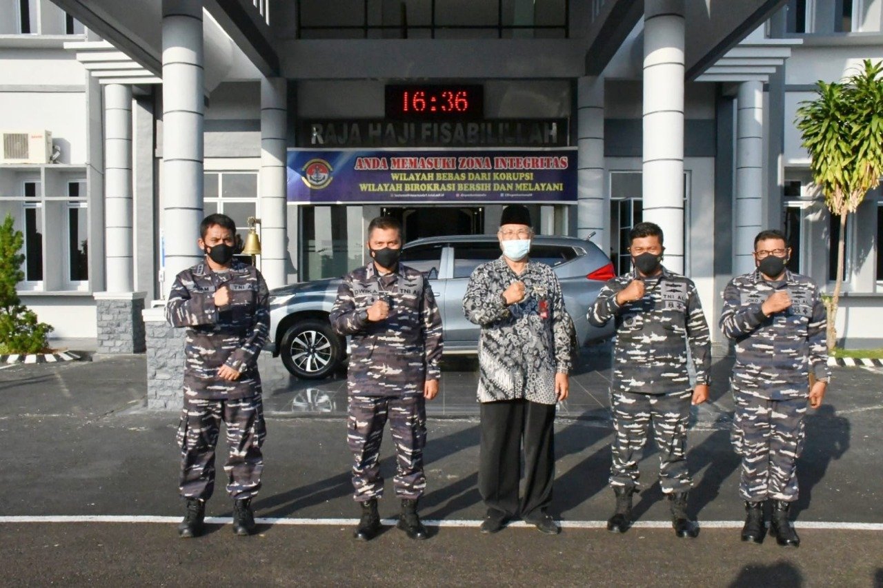 Lantamal IV (Tanjungpinang) – Komandan Pangkalan Utama TNI Angkatan Laut IV Tanjung pinang (Danlantama IV Tanjung pinang) Laksamana Pertama TNI Dwika Tjahja Setiawan, S.H., M.H., terima kunjungan Ketua Majelis Rakyat Kepulauan Riau Huzrin Hood di ruang VIP Mako Lantamal IV Jl. Yos Sudarso No.1 Batu Hitam Tanjung pinang Kepulauan Riau, Jumat sore (08/10/2021).