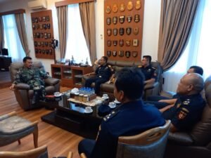 Lantamal IV (Tanjungpinang) – Komandan Pangkalan Utama TNI Angkatan Laut IV Tanjug pinang (Danlantamal IV Tanjung pinang) Laksamana Pertama TNI Indarto Budiarto, S.E., M.Han., menerima kunjungan kerja (Kunker) Kepala Kantor Wilayah DJBC Khusus Kepri Akhmad Rofiq di ruang kerja Danlantamal IV, Jl. Yos Sudarso No. 1 Batu Hitam Tanjung pinang Kepulauan Riau, Selasa siang (31/8/2021).