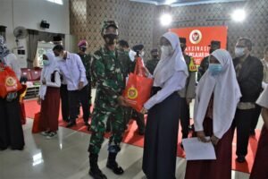 Pada kesempatan tersebut Danlantamal IV berkesempatan memberikan bingkisan kepada salah satu pelajar yang telah divaksin.