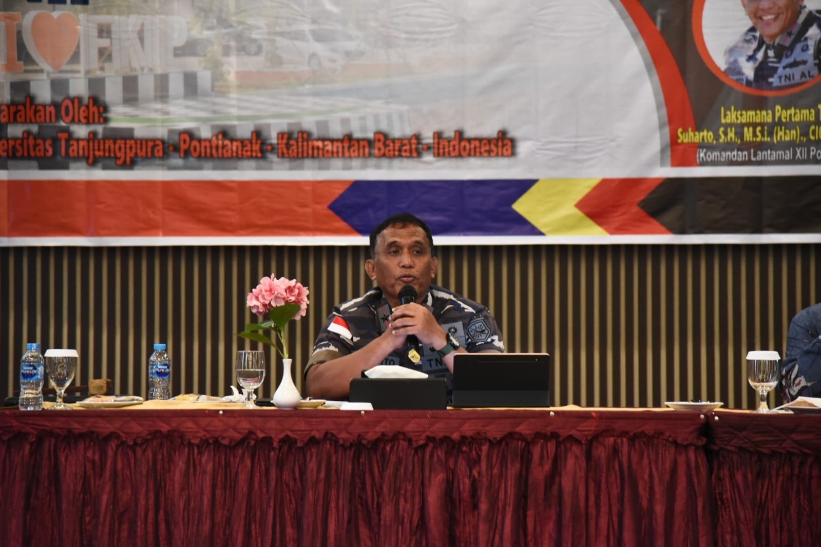 Pontianak, Kalbar – Komandan Lantamal XII Laksamana Pertama TNI Suharto, S.H., M.Si.(Han) hadir sebagai Narasumber pada Seminar Nasional FKIP Universitas Tanjungpura 2022 dengan Tema “Multikultural, Interkultural dan Inovasi dalam Pendidikan di Era Smart Society 5.0” yang dihadiri sekitar 100 orang peserta bertempat di Hotel Orchardz, Jalan Perdana Kota Pontianak Kalbar, Sabtu (17/9/2022).