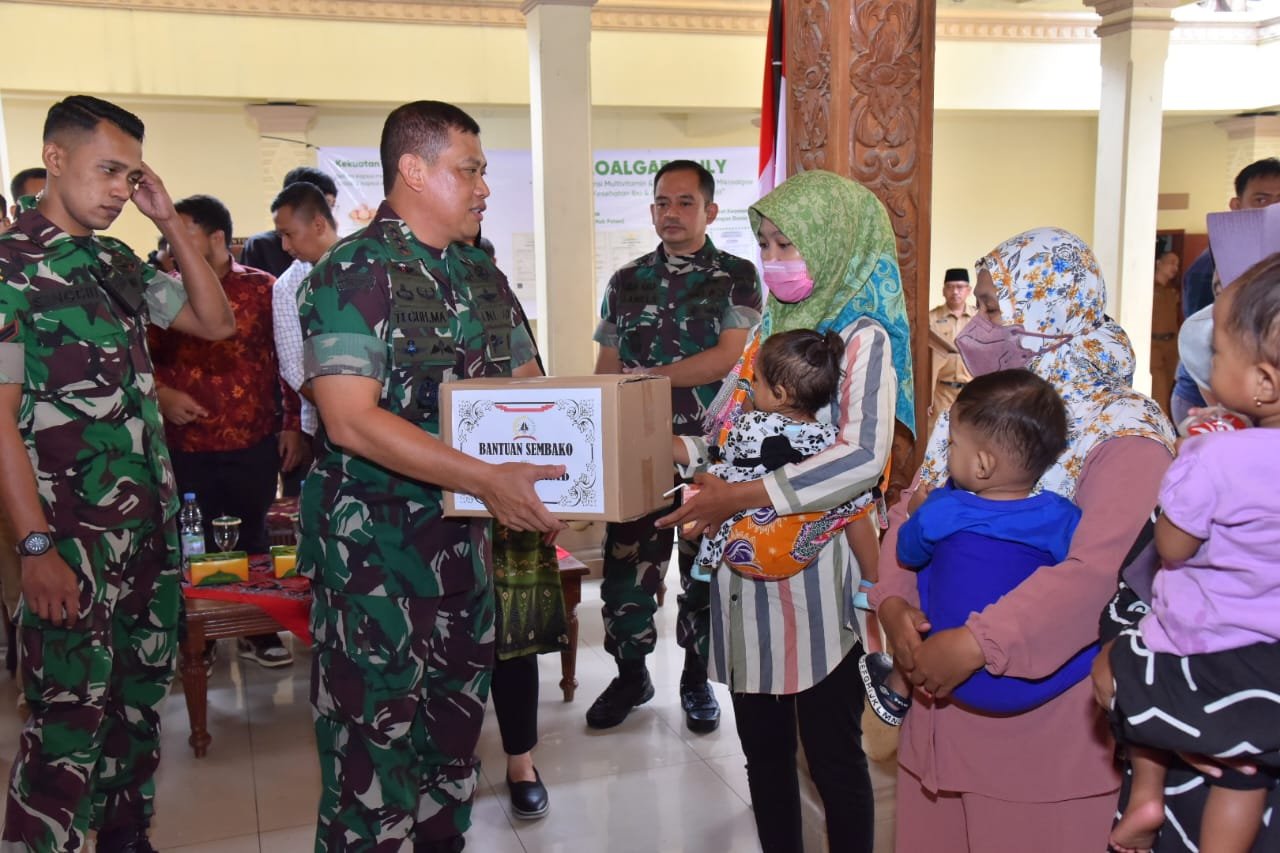 Selain melaksanakan peninjauan ke Demplot Stunting Kodim 0726/Sukoharjo, Danpusterad juga berkesempatan melaksanakan pembagian Sembako dan makanan tambahan serta vitamin bagi Ibu hamil dan Balita.