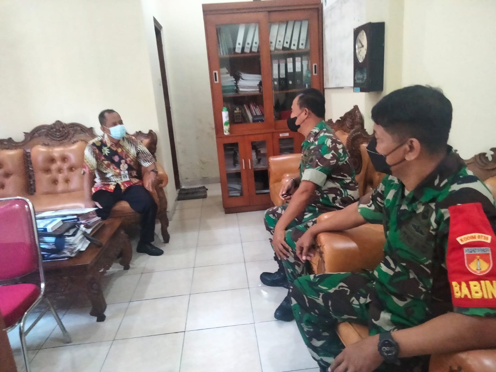 Surakarta – Guna Menangkal Varian baru Virus Covid-19. Kapten Inf.Narno yang bertugas kesehariannya selaku Danramil 03/Serengan Kodim 0735/Surakarta melaksanakan Komunikasi sosial (Komsos) dengan Ketua Satgas Jogo Tonggo (Lurah Tipes Ir.Suharudi) terkait pencegahan dan penanganan Covid-19 di wilayah teritorial Koramil 03/Serengan. Rabu (02/01/2022).