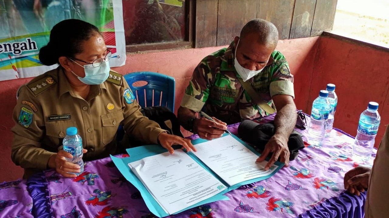 Sorong Papua Barat – Bertempat di Distrik Salawati Tengah Kabupaten Sorong Papua Komandan Koramil 1802-04/Seget. Kapten Inf Nimbrod Duwith menghadiri kegiatan pemilihan 2 Kepala Kampung di wilayah Distrik Salawati, Kabupaten Sorong. Rabu (26/01/2022).