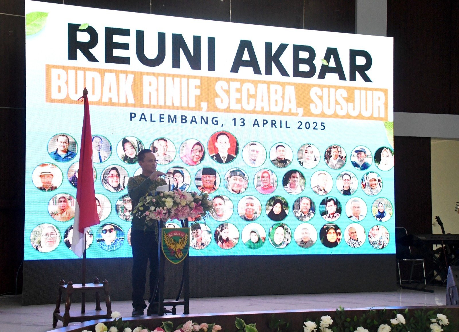 PALEMBANG – Danrem 044/Gapo Brigjen TNI Adri Koesdyanto turut menghadiri acara Reuni Akbar Budak Rinif, Secaba dan Susjur, bertempat di Balai Prajurit Makorem 044/Gapo, Jl. Jenderal Sudirman KM. 4 Kota Palembang, Minggu (13/4/2025).