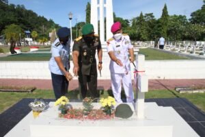Jayapura – Komandan Korem (Danrem) 172/PWY Brigjen TNI Izak Pangemanan mewakili Pangdam XVII/Cenderawasih Mayjen TNI Ignatius Yogo Triyono, memimpin pelaksanaan upacara ziarah dalam rangka memperingati HUT ke-76 TNI, bertempat di Taman Makam Pahlawan Kusuma Trikora, Waena, Kota Jayapura, Senin (4/10).