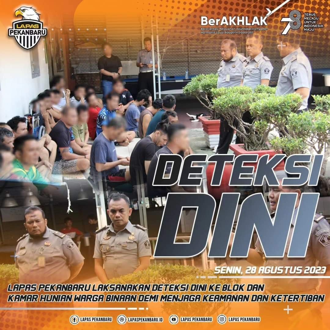CAHAYANEWSKEPRI.COM – Dipimpin langsung oleh Kepala Kesatuan Keamanan Lapas Kelas IIA Pekanbaru (Ka.KPLP) Aris Yuliyanta beserta jajaran, kegiatan deteksi dini ini berlangsung pada 4 kamar secara acak yang ada di Blok Hunian C. Dalam kegiatan ini pengecekan dilakukan untuk melihat kondisi serta keadaan kamar hunian, serta melihat lubang-lubang kamar mandi. Selain itu dilakukan juga penyitaan terhadap barang-barang yang dilarang masuk ke dalam kamar hunian.