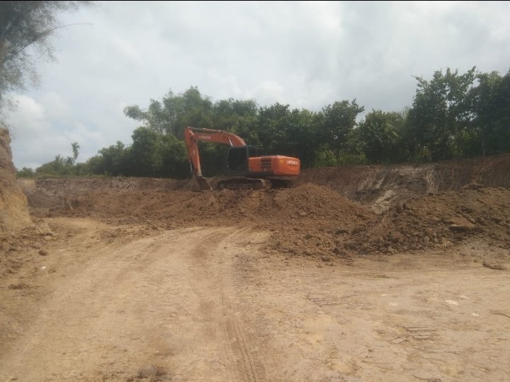 Sejumlah mobil dump truck terlihat keluar masuk lokasi galian membawa material tanah timbun tanpa menggunakan penutup muatan. Kondisi tersebut menyebabkan debu berterbangan di sepanjang ruas jalan lintas nasional yang melintasi wilayah tersebut, sehingga mengganggu jarak pandang dan membahayakan keselamatan pengguna jalan.