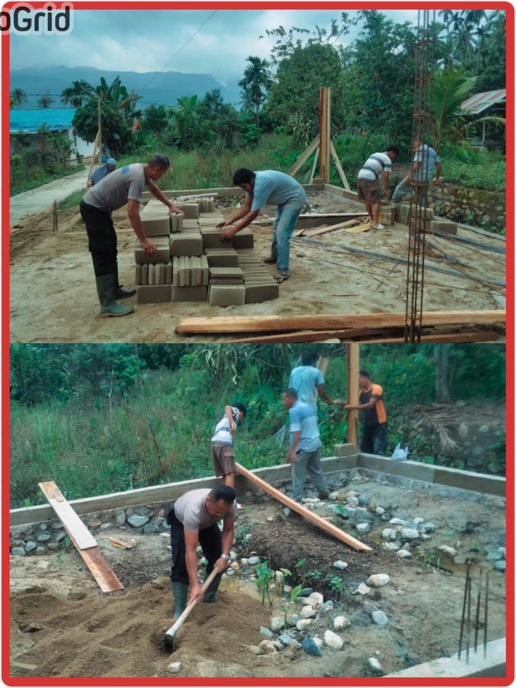 Di tengah kondisi cuaca mendung, kegiatan pembangunan tetap berjalan dengan semangat kebersamaan. Personel Brimob bergotong royong bersama warga memasang besi pondasi, melangsir material batu, serta merakit besi dan menimbun tanah sebagai bagian dari pembangunan rumah hunian sementara dan hunian tetap bagi warga terdampak banjir.