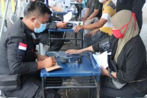 Vaksinasi dosis 1 di wilayah Kota Batam sudah mencapai 85%, masih kurang 15% persen lagi.Kami juga membawa Tim Vaksinator untuk mendatangi rekan rekan kita nelayan yang sedang berada di pulau-pulau agar dilakukan vaksinasi guna mendukung program pemerintah menuju Herd Immunity. – Tutup Dir Polairud Polda Kepri AKBP Liberty P, S.I.K., M.H., didampingi oleh Kasubbid Penmas Bidhumas Polda Kepri Kompol Robby Topan Manusiwa,S.I.K.