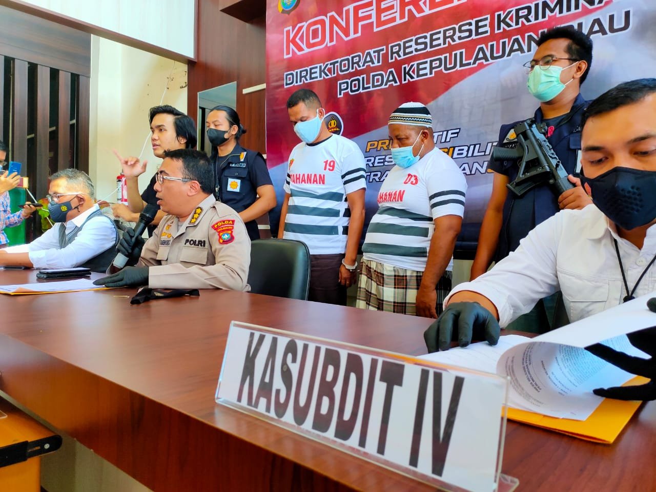 ″Penangkapan terhadap pelaku berawal pada hari minggu tanggal 19 Juli 2020 sekira Jam 15.30 Wib, Tim dari Subdit IV Ditreskrimum Polda Kepri berhasil melakukan penangkapan terhadap tersangka Inisial SH alias S dirumah kontrakan tersangka yang beralamat di Perum Air Raja, Kota Tanjung Pinang, dan diwaktu yang hampir bersamaan tim juga berhasil melakukan penangkapan terhadap tersangka Inisial F alias H yang saat itu tersangka berada tempat tinggalnya yang beralamat di kilometer 16 Kecamatan Toapaya Selatan, Kab. Bintan. Selanjutnya tersangka dan barang bukti dibawa ke Polda Kepri untuk dilakukan pemeriksaan, penelitian dokumen dan pengembangan perkara″. Ujar Kabid Humas Polda Kepri Kombes Pol Harry Goldenhardt S., S.IK., M.Si.