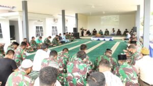 Lingga, Kepri – Sebelum pelaksanaan kegiatan latihan Armada Jaya Ke XXXIX Tahun 2021di daerah latihan Pantai Todak, Desa Batu Berdaun, Kecamatan Singkep Kab. Lingga, Pangkalan TNI-AL (Lanal) Dabo Singkep (DBS) menggelar do’a selamat bersama masyarakat sekitar dan para ulama di Guest House Lanal Dabo Singkep. (24/06/21)