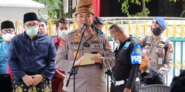 Pekanbaru – Forum Komunikasi Pemuka Masyarakat Riau (FKPMR) menggelar tradisi tepuk tepung tawar untuk Kapolda Riau, Irjen Pol Muhammad Iqbal di Sekretariat FKPMR, Senin (10/1/2022).