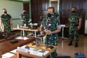 Manokwari Papua Barat – Gelar Conferensi Pers, Mayjen TNI I Nyoman Cantiasa, S.E., M.Tr.(Han)., membeberkan hasil pencapaian para prajuritnya selama menjabat sebagai Pangdam XVIII/Kasuari, di aula Kodam XVIII/Kasuari, Trikora, Arfai 1, Manokwari, Papua Barat.