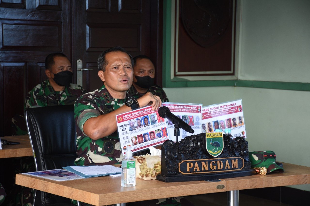 Ikut mendampingi Pangdam dalam conferensi pers tersebut diantaranya Asintel, Asops, Aster Kasdam XVIII/Kasuari dan Kapendam XVIII/Kasuari.