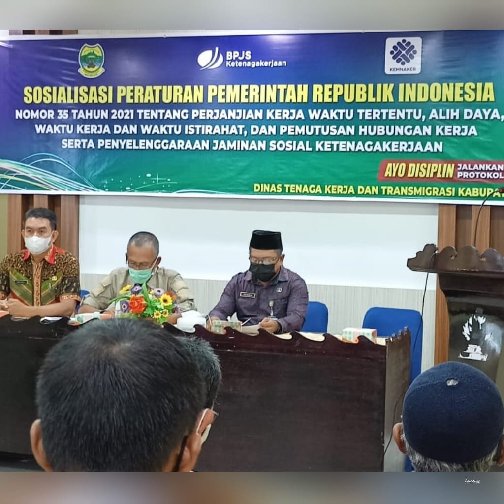 Lingga, Kepri – Dalam rangka beri pemahaman undang-undang cipta kerja tentang Peraturan Pemerintah Republik Indonesia (Perpem-RI) nomor 35 dan nomor 36 tahun 2021. Dinas ketenagakerjaan dan transmigrasi lingga menggelar kegiatan sosialisasi kepada para pihak pelaku usaha. Bertempat kegiatan ruang pertemuan One Hotel Dabo, Kecamatan Singkep, Kabupaten Lingga, Kepri. Kamis. Kamis 17/06/2021.
