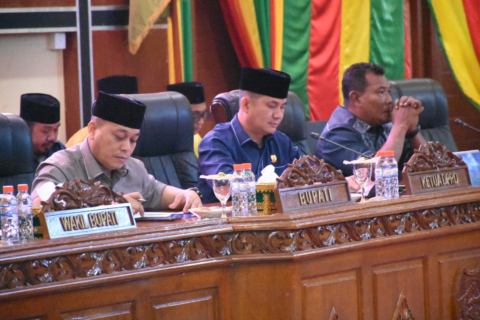 Paripurna dipimpin langsung oleh Ketua DPRD Kabupaten Lingga Ahmad Nashiruddin di dampingi Wakil Ketua I DPRD Kabupaten Lingga Aziz Martindaz, S.Pd. turut hadir pada paripurna tersebut Bupati Lingga M. Nizar, S.Sos, Wakil Bupati Lingga Neko Wesha Pawelloy, Sekretaris Daerah serta Forkopimda, Kepala OPD, Camat/Lurah, Kades/BPD se-kabupaten Lingga.