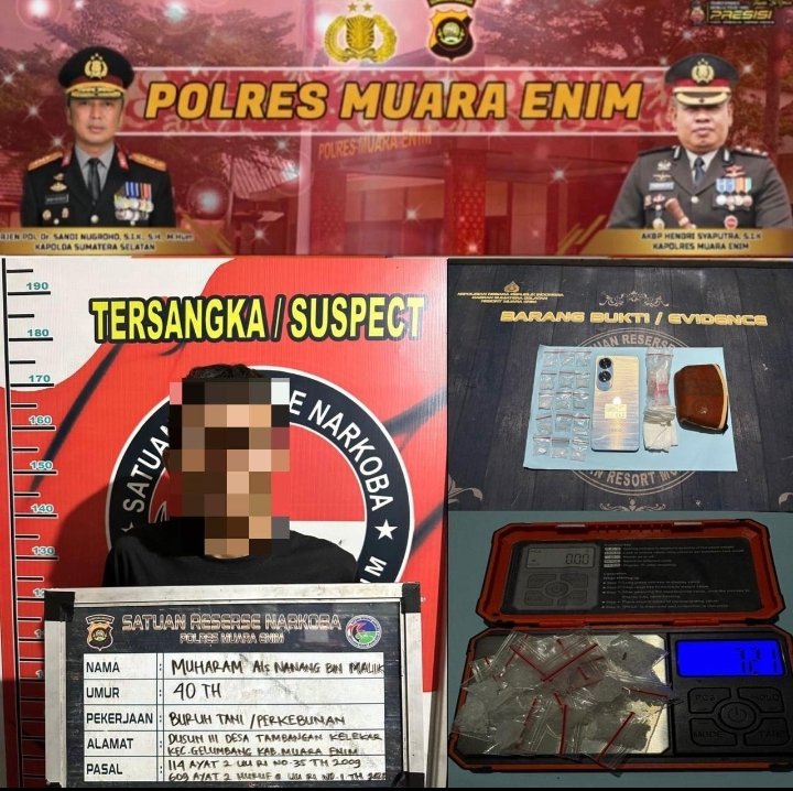 MUARA ENIM, (CNK) — Jajaran Polda Sumatera Selatan melalui Polres Muara Enim bergerak cepat merespons laporan masyarakat dan berhasil mengamankan seorang pengedar narkotika jenis sabu di Desa Tambangan Kelekar, Kecamatan Gelumbang, Selasa (7/4/2026) dini hari.