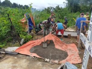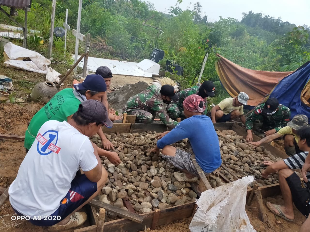 Langau 1 – Anggota Satgas Pamtas RI-Malaysia Yonif 144/JY membantu Pengecoran Makam Warga di desa Langau Kecamatan Puring Kencana Kabupaten Kapuas Hulu Kalimantan Barat. Hal ini disampaikan Dansatgas Pamtas RI-Malaysia Letkol Inf Andri Suratman dalam keterangan tertulisnya di Pos Kotis Badau. Minggu (10/10/2021).