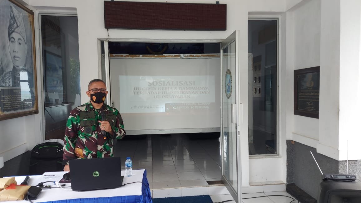 Tanjung Uban – Dihari terakhir ini pembekalan disampaikan oleh Kepala Dinas Hukum Lantamal IV (Kadiskum Lantamal IV) Letkol Laut (KH) R. Deni Nugraha Ramdani, S.H., M.H., M.M., M.Tr. Hanla., yang mengangkat judul Sosialisasi Undang-Undang Cipta Kerja dan Dampaknya Terhadap Undang-undang Perikanan dan Undang-undang Pelayaran kegiatannya masih berlangsung di Kantor Satuan Kapal Cepat Komando Armada I (Satkat Koarmada I) Komplek Koarmada I Tanjung Uban Bintan Kepri, Rabu pagi (07/7/2021).